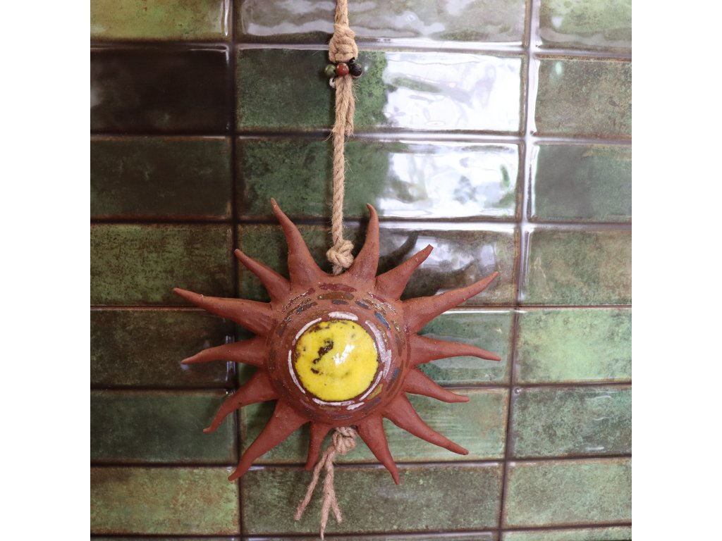 Toto slunce je symbol rostoucí energie a síly. Ručně vyráběné s inspirací v indiánských tradicích. Každý kus je originál a vnáší do vašeho domova teplo, radost a ochranu. Nečekejte, dokud bude vyprodáno – objednejte si tento jedinečný keramický kousek ještě dnes.